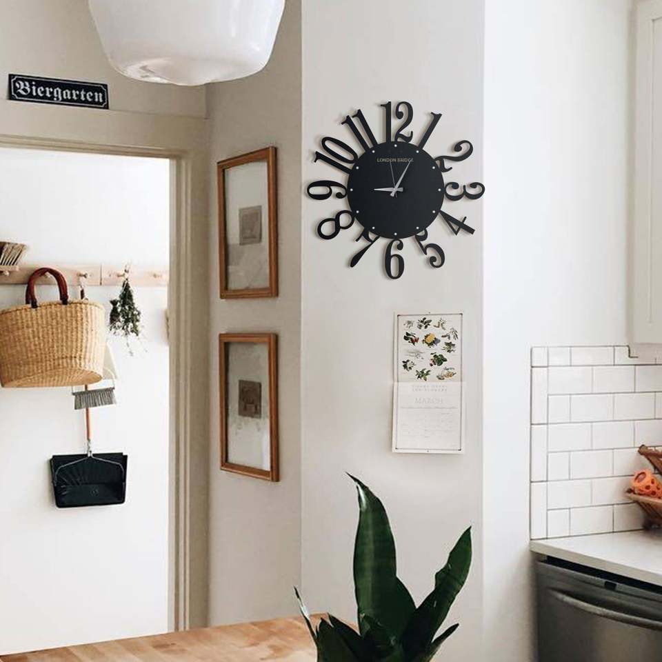 นาฬิกาติดผนังตกแต่งลายสะพานลอนดอนขนาดใหญ่ดีไซน์อนาล็อกแบบหน้าเดียวหรูหราสไตล์อาร์ตเดคโคแก้วเหล็กเรซิ่นของตกแต่งบ้าน