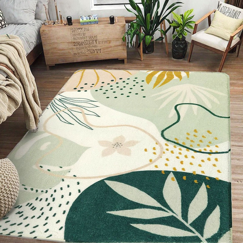 พรมโพลีเอสเตอร์ลายดอกไม้แบบนามธรรมสมัยใหม่ ผลิตด้วยเครื่องจักรขนาดใหญ่ พื้นผิวกันลื่น ขนสั้น หนา 6 มม. เหมาะสำหรับบ้าน หอพัก ห้องรับประทานอาหาร