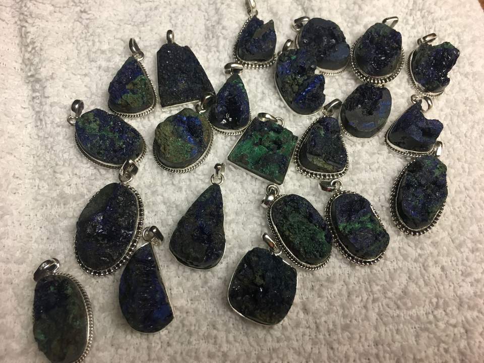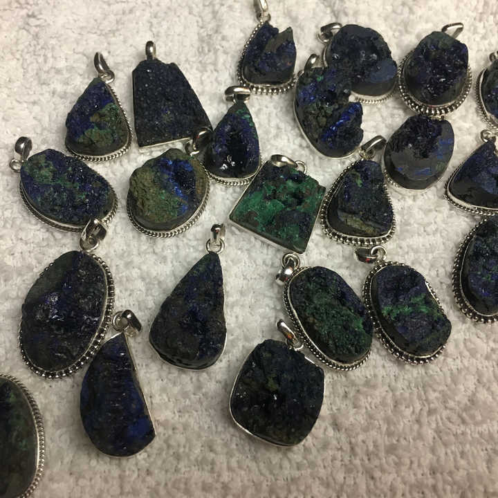 จี้อะซูไรต์มาลาไคต์ขนาดใหญ่ของผู้ชายเครื่องประดับเงินสเตอร์ลิงจิวเวลรี่แบบมิกซ์เครื่องประดับสวยงามและจี้เครื่องประดับขายส่ง