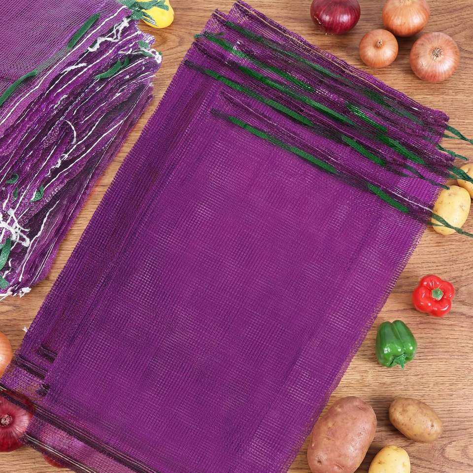 ถุงตาข่ายขนาดใหญ่สำหรับเก็บผลไม้ ถุงตาข่ายใส่หัวหอม ถุงเก็บผักแบบใช้ซ้ำได้พร้อมเชือกรูด ถุงใส่หัวหอมและมันฝรั่ง