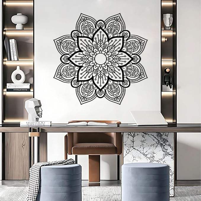 งานศิลปะโลหะขนาดใหญ่ลายดอกแมนดาลาแบบอาร์ตเดโค สำหรับตกแต่งผนังห้องนอน สำนักงาน หรือห้องโยคะ