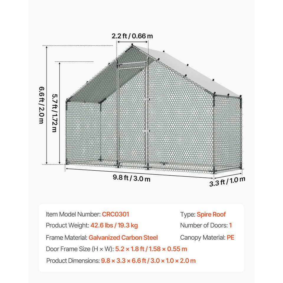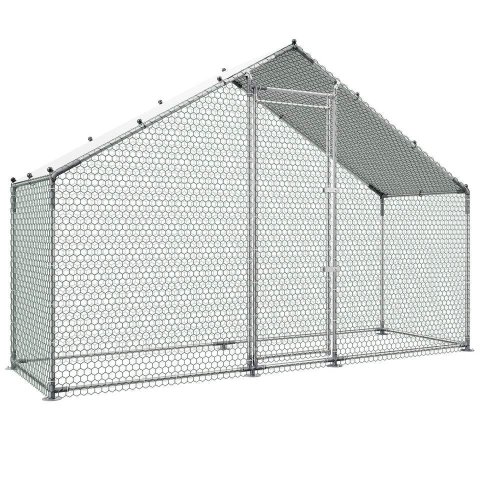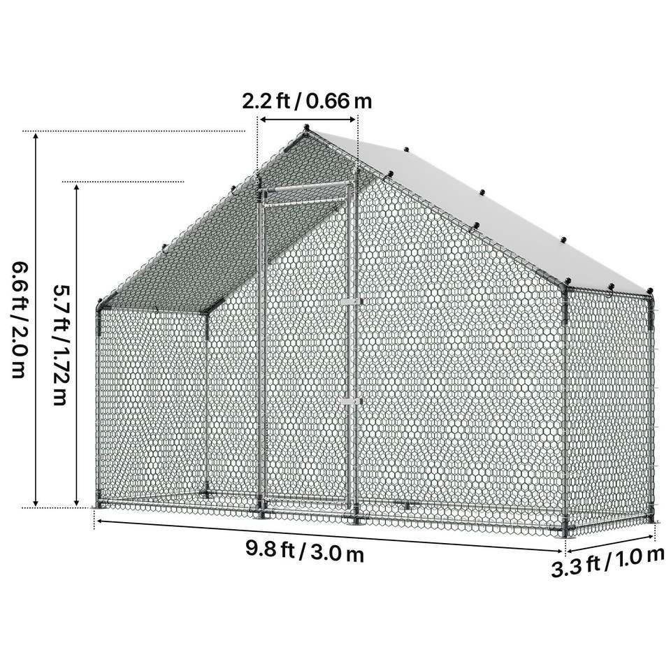 โรงเรือนเลี้ยงไก่โลหะขนาดใหญ่ 9.8 x 3.3 x 6.6 ฟุต กันน้ำ พร้อมโครงสร้างแข็งแรงและหลังคาทรงจั่ว สำหรับดูแลสัตว์ปีก