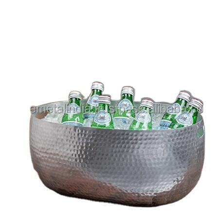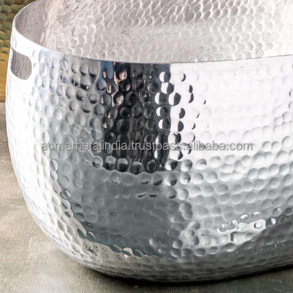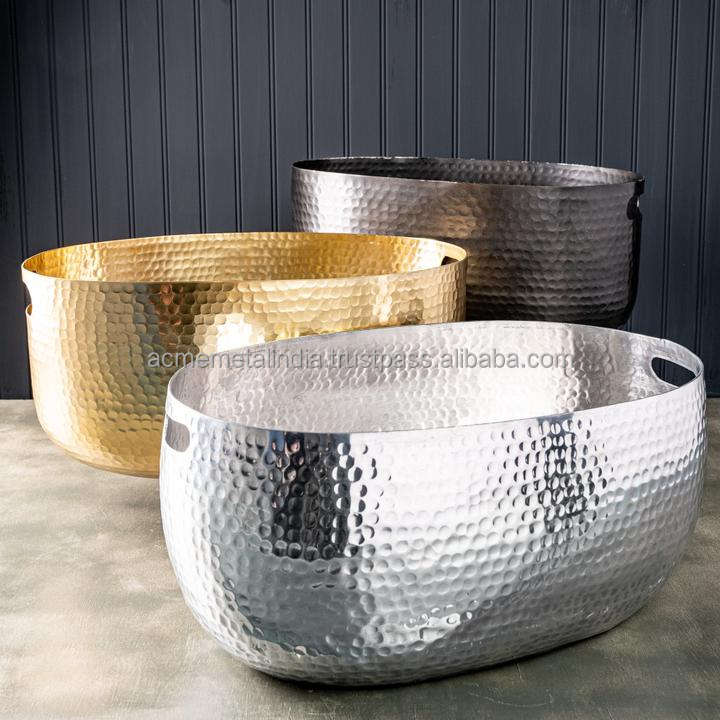 Large Mirror Polished Metal Garden Bucket in Stainless Steel with Hammered Pattern Ideal for Soil Storage and Planting