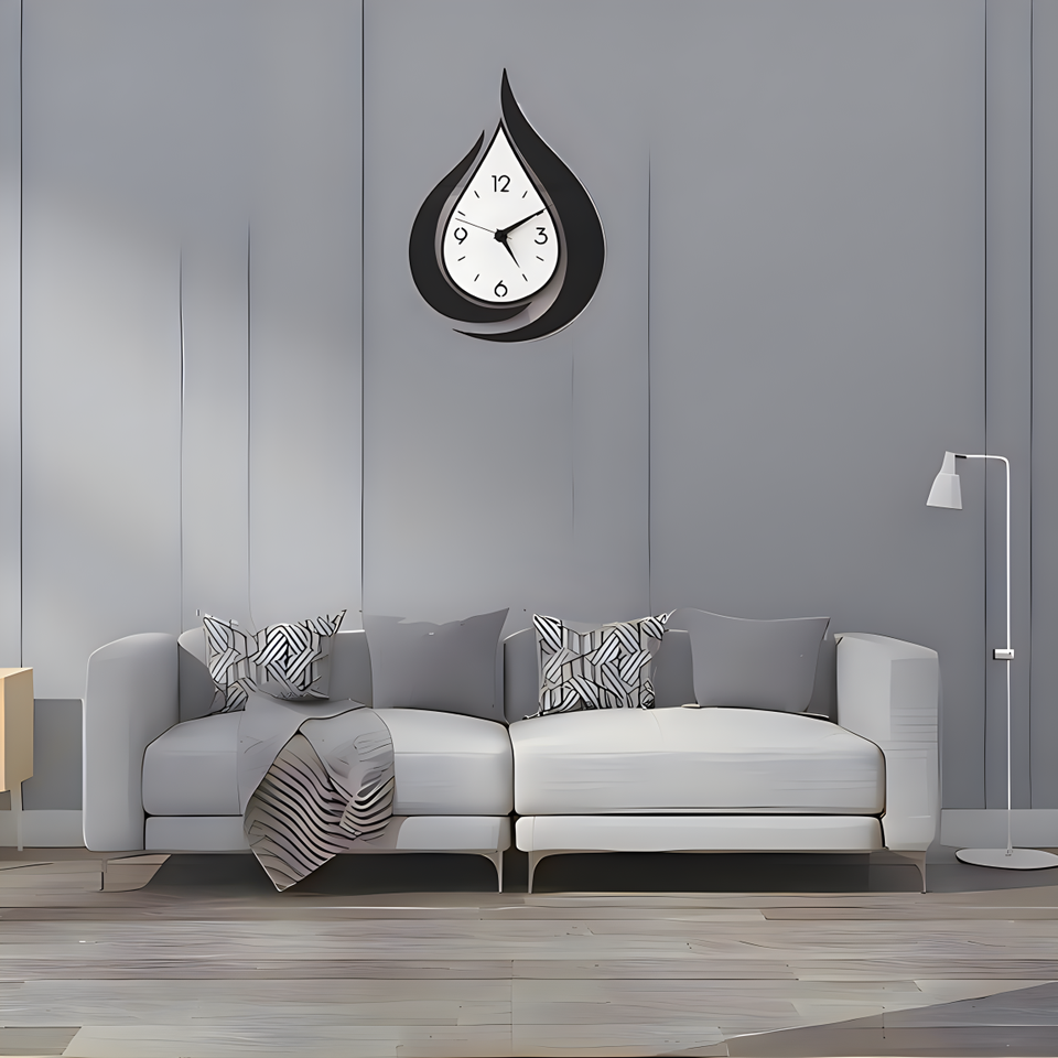 นาฬิกาแขวนผนังอะคริลิครูปทรงหยดน้ำ16.5นิ้วแบบใสและสีดำทันสมัย
