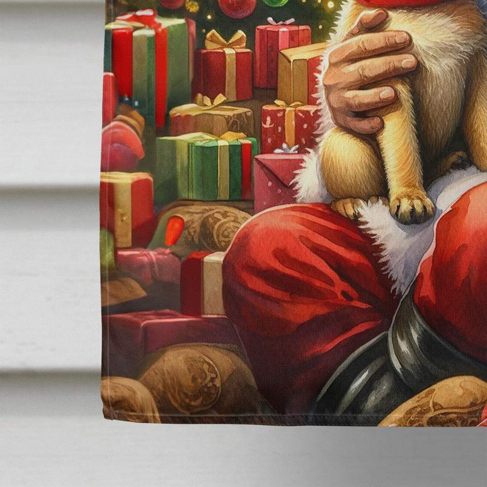 Large Multicolor Polyester Santa Claus House Flag Fawn Pug Design for Porch Sleeve Pole Decorative Yard Banner Artwork Wall