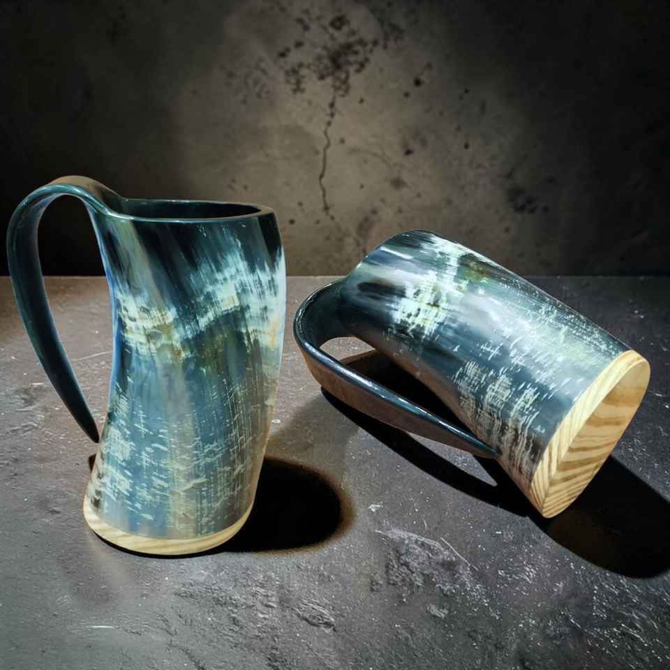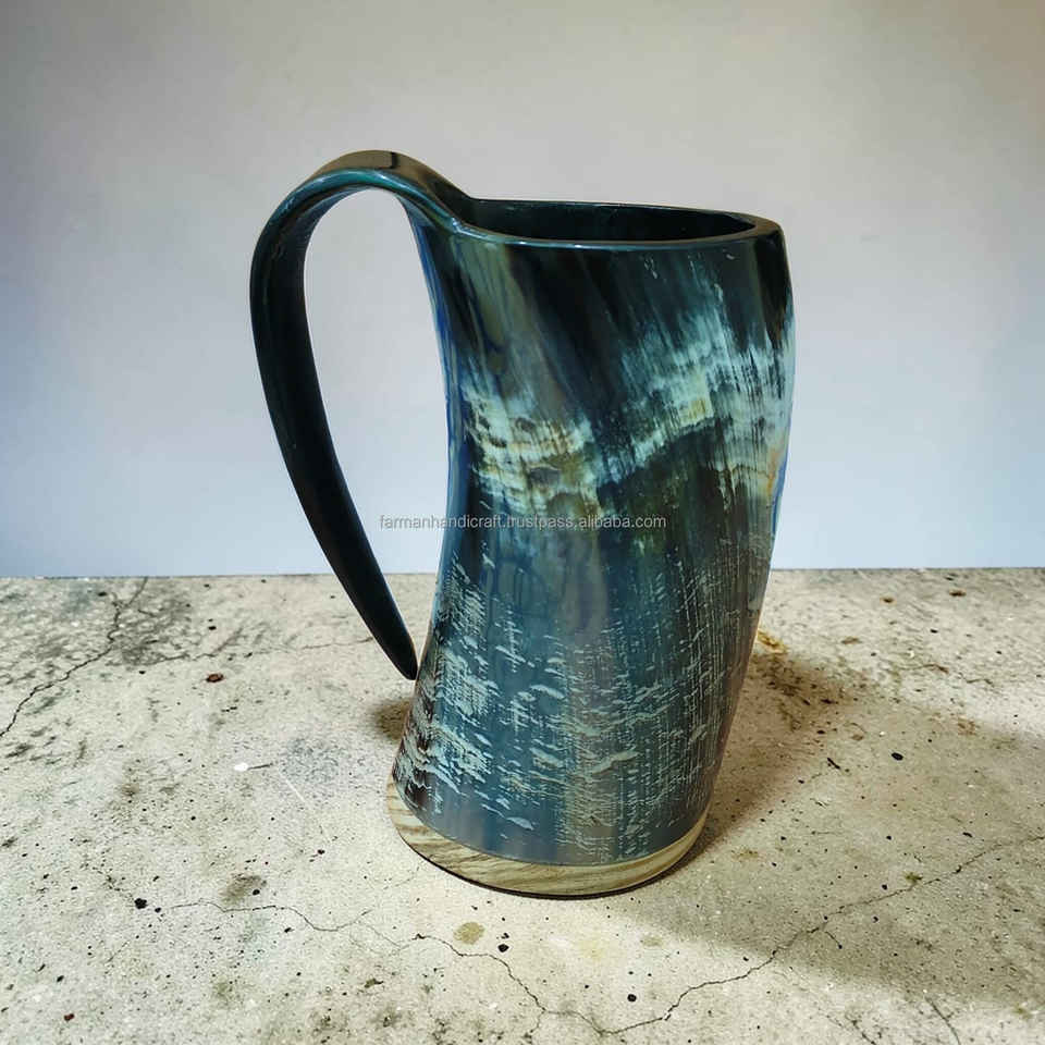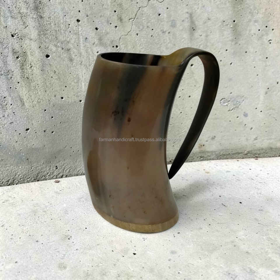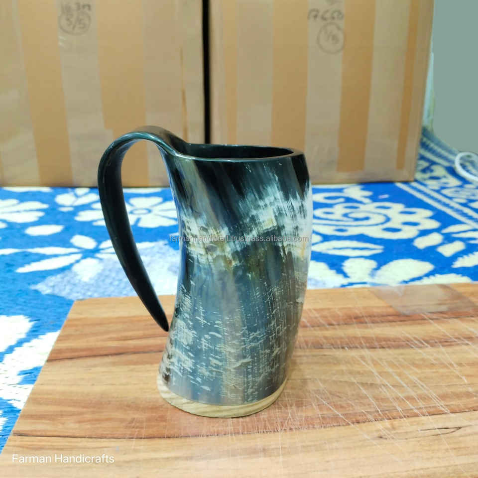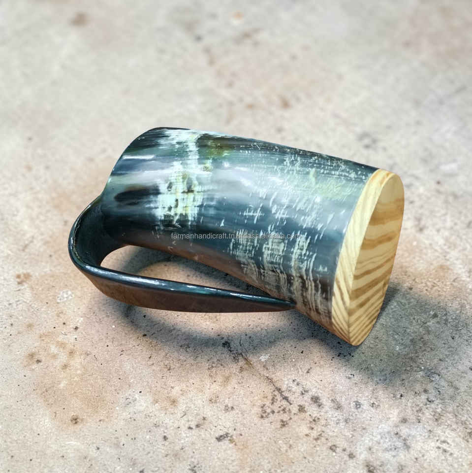 แก้วน้ำเขาสัตว์แบบไวกิ้งขนาดใหญ่ งานฝีมือยุคกลาง พร้อมฐานไม้ สำหรับเบียร์และมี้ด ราคาดีที่สุด