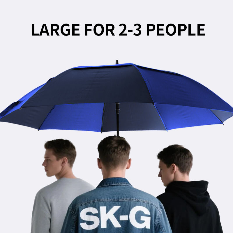 ร่มกอล์ฟทรงตรงขนาดใหญ่ สีกรมท่า ดีไซน์กันลมสองชั้น ป้องกันรังสียูวี ด้ามจับ EVA หรูหรา สำหรับกีฬากลางแจ้งทุกฤดู