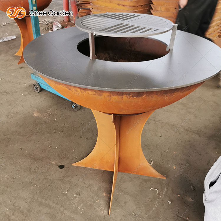 เตาบาร์บีคิวเหล็กคอร์เทนขนาดใหญ่สำหรับกลางแจ้ง ดีไซน์ทันสมัย พร้อมเอฟเฟกต์สนิม - ควบคุมด้วยรีโมทและปรับความสูงได้