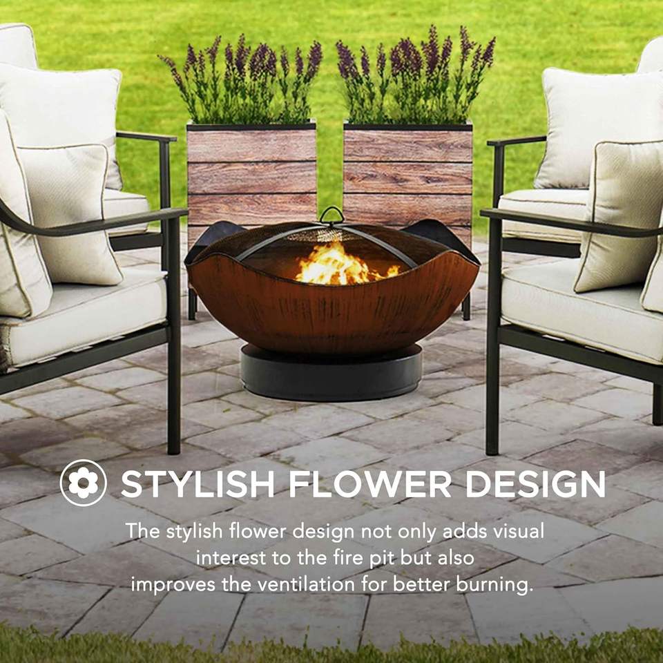 กองไฟโลหะกลางแจ้งขนาดใหญ่พร้อมตาข่ายป้องกันประกายไฟเหมาะสำหรับการทำความร้อนในสวนลานบ้านและการออกแบบที่ปลอดภัยสำหรับค่ำคืนของครอบครัว