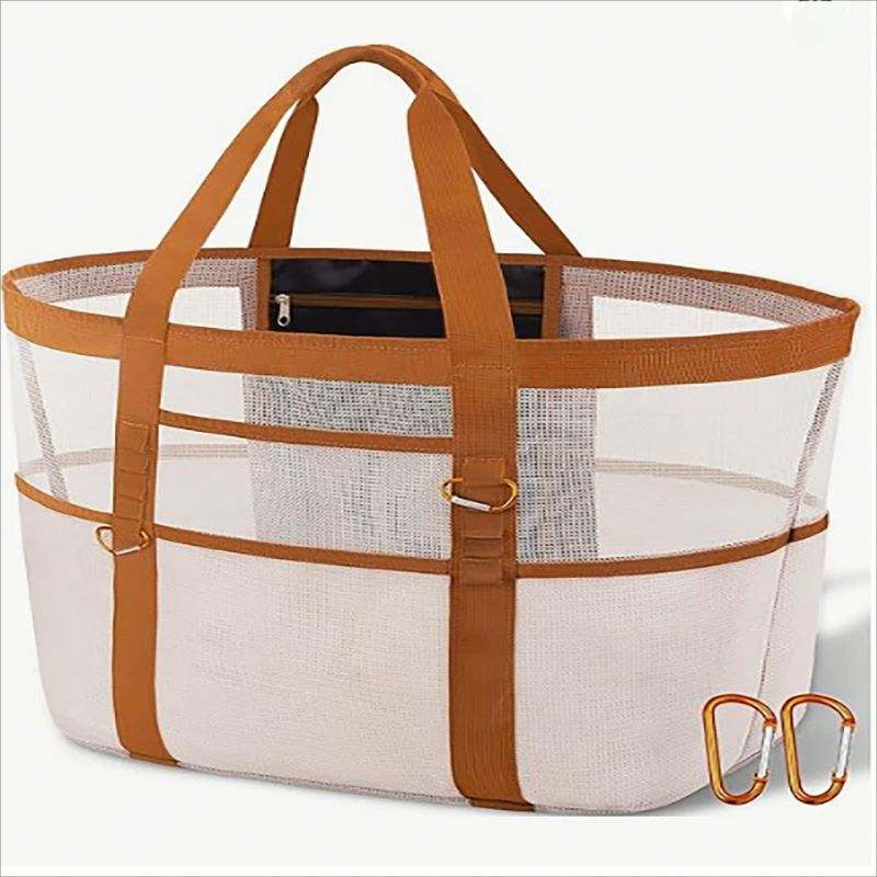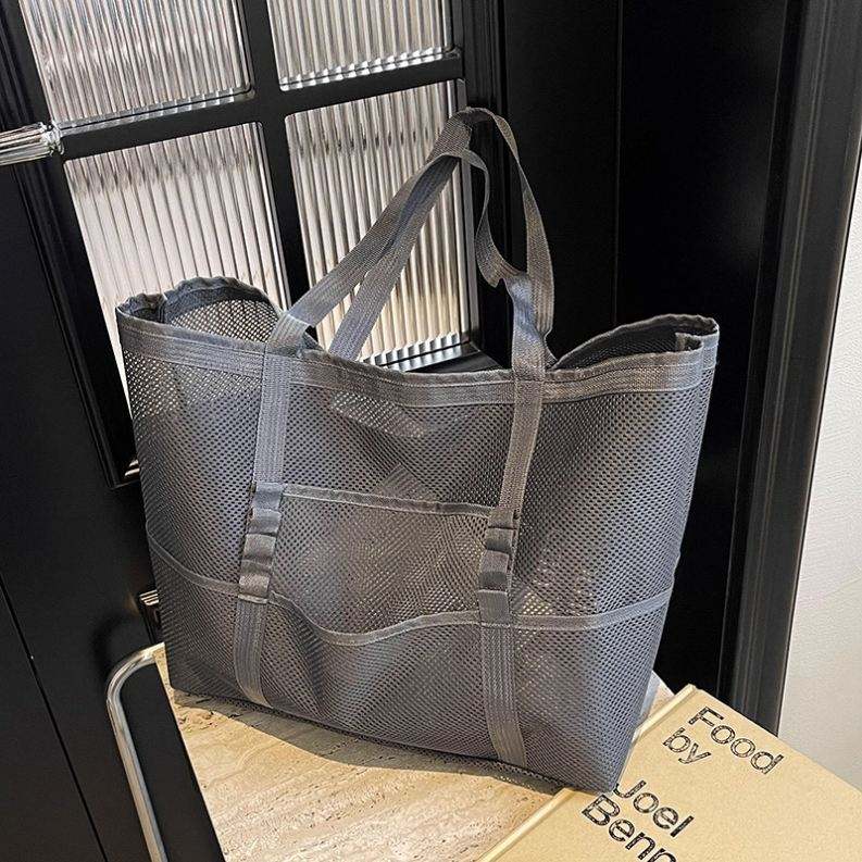 กระเป๋าตาข่ายใส่ชายหาดขนาดใหญ่มีกระเป๋าสำหรับใส่ไปช้อปปิ้งในวันหยุดชายหาด