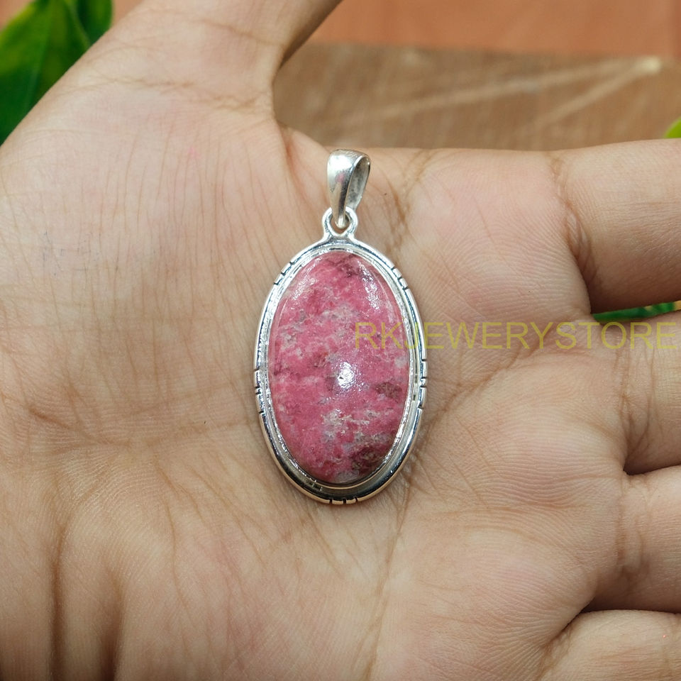 ชื่อหรือคำ:จี้หินทูไลต์สีชมพูธรรมชาติ ทรงรี เงินแท้ 925