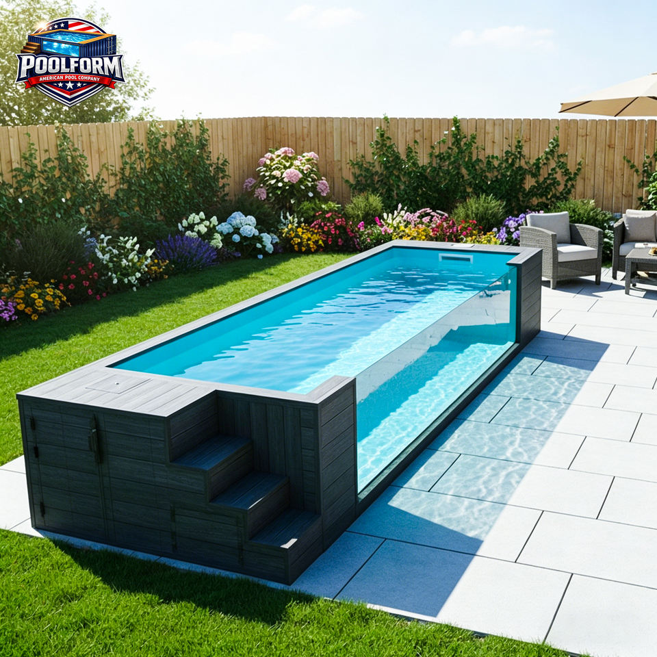 โครงเหล็กเสริมแรงสำหรับสระว่ายน้ำเหนือพื้นดิน พร้อมตกแต่งด้วยวัสดุ WPC สระว่ายน้ำไฟเบอร์กลาสสำเร็จรูป