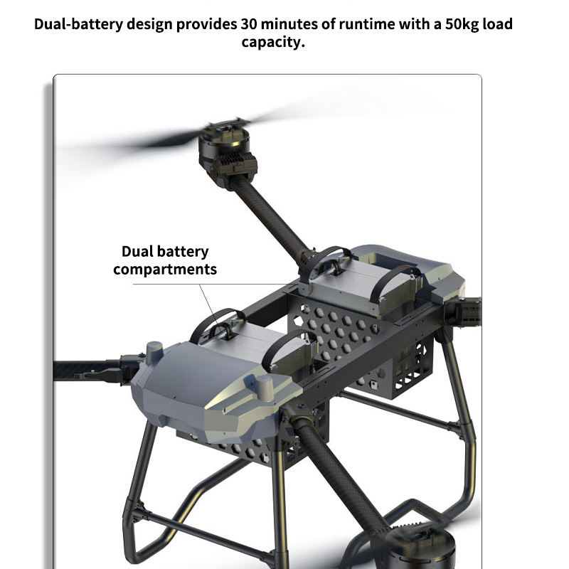 โดรนบรรทุกสินค้าขนาดใหญ่สำหรับมืออาชีพ รับน้ำหนักได้ 50 กก. พร้อมระยะบินไกล สำหรับการขนส่งสินค้าเชิงพาณิชย์แบบยกของหนัก
