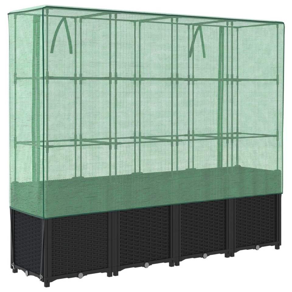 แปลงปลูกผักยกพื้นขนาดใหญ่ สีดำและสีเขียว ทำจากโพลีโพรพิลีนและโพลีเอทิลีน โครงเหล็ก สำหรับเรือนกระจกและอุปกรณ์เสริมในห้อง