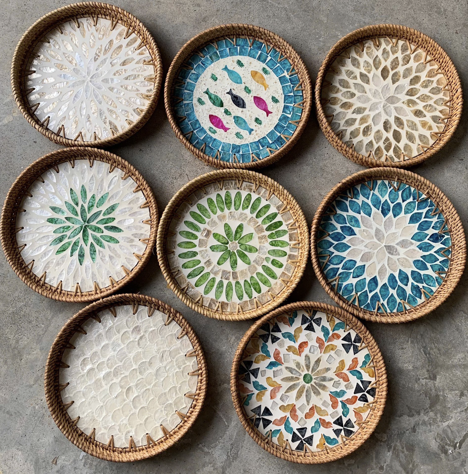 ตะกร้าหวายทรงกลมขนาดใหญ่แฮนด์เมดมีหูจับสำหรับจัดเก็บอาหารงานหัตถกรรมแบบดั้งเดิมจากเวียดนาม