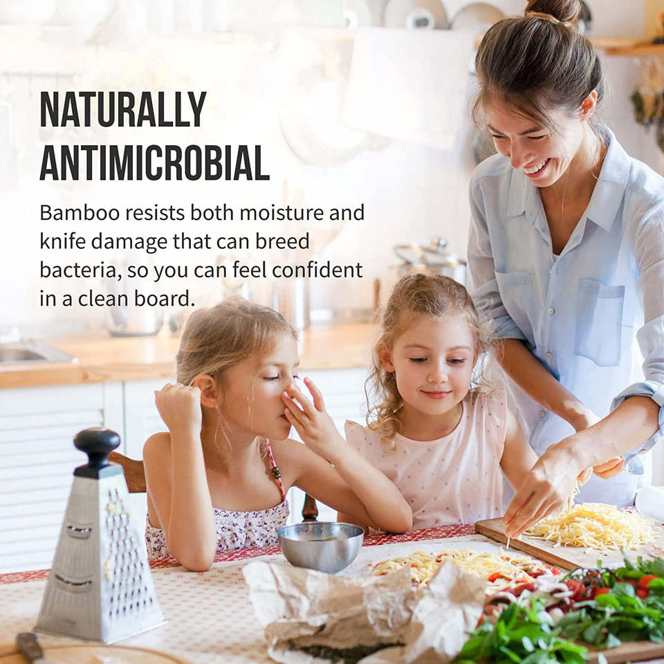 เขียงไม้ไผ่รูปสี่เหลี่ยมผืนผ้าขนาดใหญ่ | เขียงงานหนักสำหรับเชฟมืออาชีพและผู้ให้บริการจัดเลี้ยง ปลอดภัยสำหรับเครื่องล้างจาน