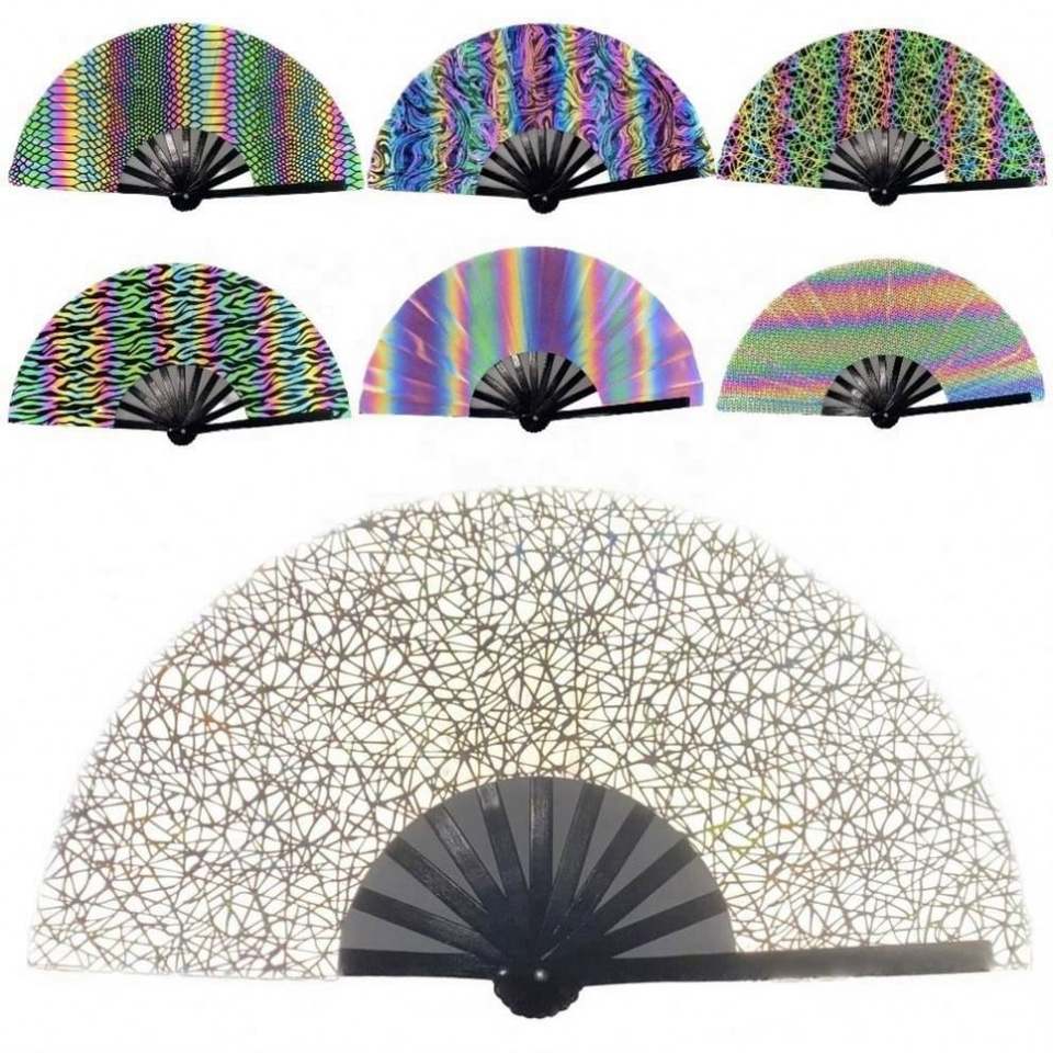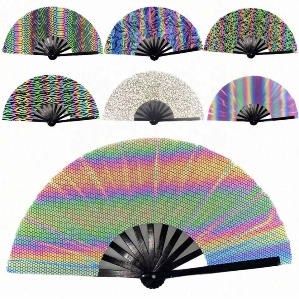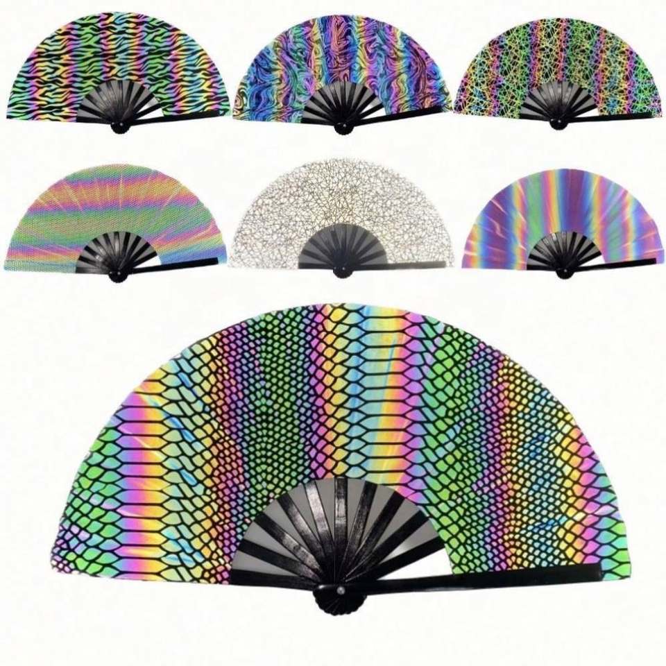 พัดสะท้อนแสงขนาดใหญ่ 27 ซม. / 33 ซม. พัดโฮโลแกรม UV คุณภาพสูง พัดไม้ไผ่พับได้ สำหรับงานปาร์ตี้