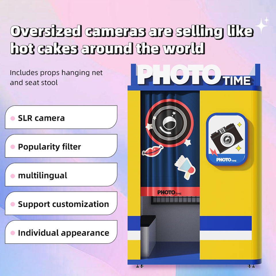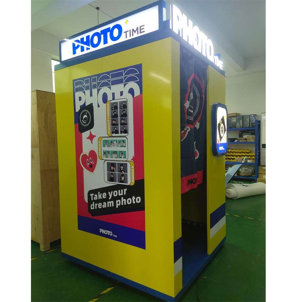 ตู้บูธถ่ายรูปในห้องขนาดใหญ่พร้อมกล้องเซลฟี่พิมพ์ลายเคลื่อนไหวเครื่องจำหน่ายสินค้าสำหรับงานปาร์ตี้