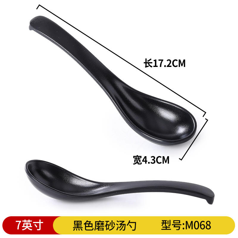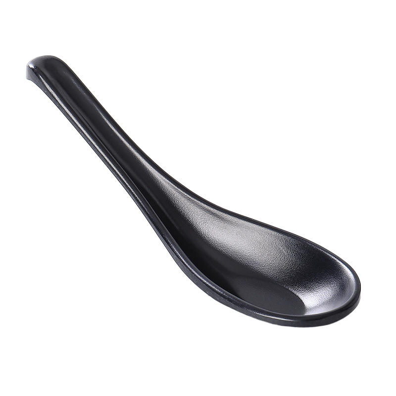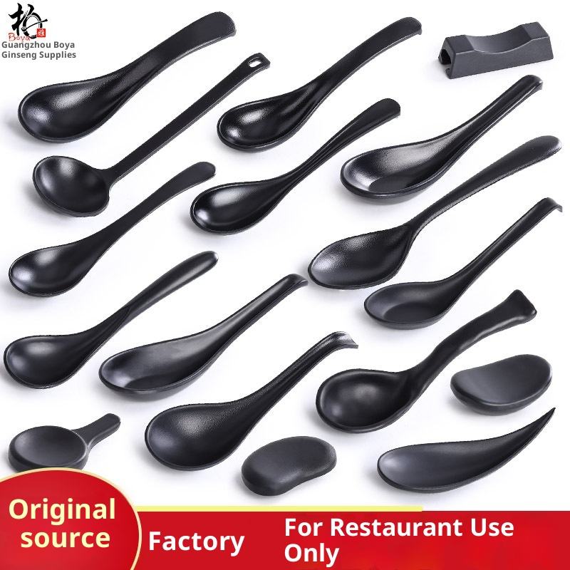 ช้อนรับประทานอาหารช้อนพลาสติกเคลือบเงาสำหรับซุปข้าวใช้ซ้ำได้สีดำแบบปรับแต่งได้สไตล์ญี่ปุ่นขนาดใหญ่