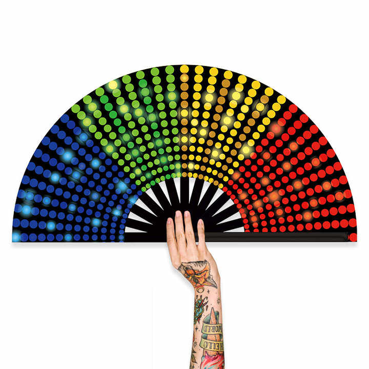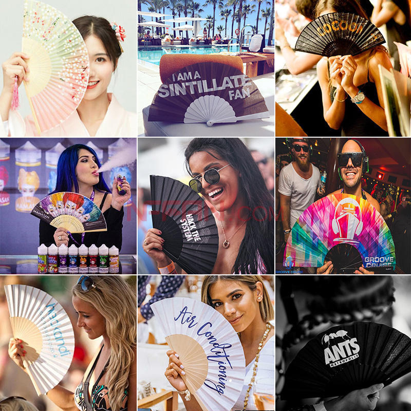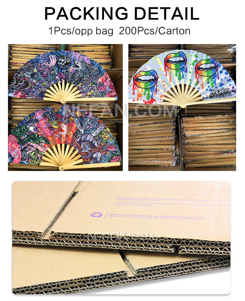 พัดพับมือถือขนาดใหญ่ ลายพิมพ์ระเหิดสีบนผ้าคลุมโครงไม้ไผ่ ของขวัญส่วนตัวสำหรับเทศกาล