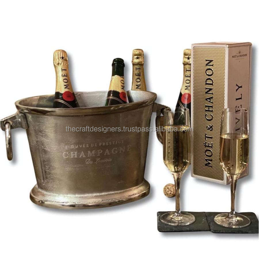 Large Silver Beer Champagne Ice Bucket Handmade Wine Chiller Cold Drinks Can Freezer Silver Wine Cooler Beverage Bar ice Tub