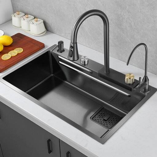 อ่างล้างจานครัวแบบอ่างเดี่ยวขนาดใหญ่ อ่างล้างผักในครัวเรือน หนา 5.0 มม. ผลิตจากสแตนเลส SUS304