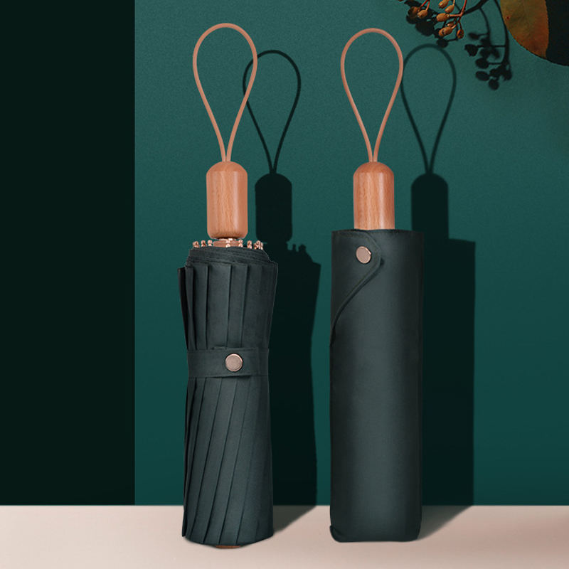 ขนาดใหญ่23นิ้วกันน้ำกรอบอลูมิเนียมสีทองจับไม้ร่มพับ16ซี่โครง
