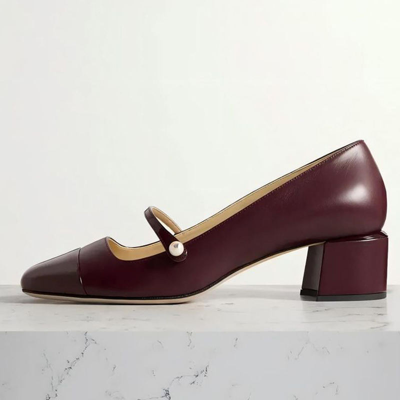 รองเท้าส้นเตี้ยทรงเหลี่ยม ไซส์ใหญ่ 46 สำหรับผู้หญิง สายรัดข้อเท้าแบบหัวเข็มขัด รองเท้าส้นหนาแบบคลาสสิก สไตล์แมรี่เจน ทำจากหนังแก้ว