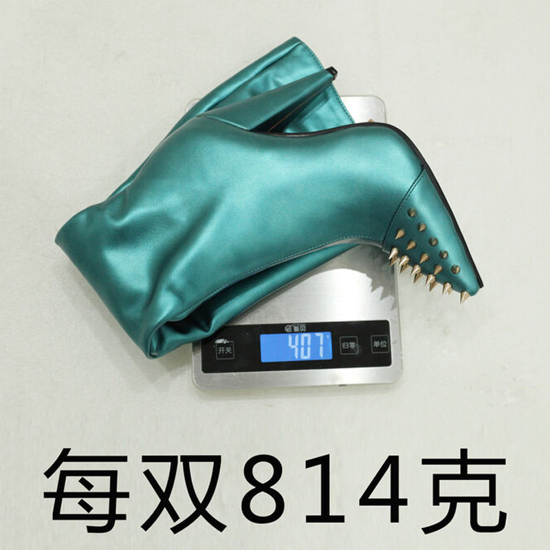 รองเท้าบูทส้นสูงไซส์ใหญ่ 47 สำหรับผู้หญิง แบบมีซิปด้านข้าง ประดับหมุดโลหะ ความสูงระดับเข่า ทรงกว้าง