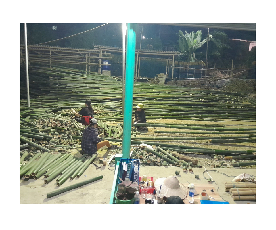 ไม้ไผ่ผ่าครึ่งเพื่อการเกษตรขนาดใหญ่ผ่าไม้ไผ่ใหญ่แยก Moso เข้าเฝือกไม้ไผ่สีเขียวเหลือง
