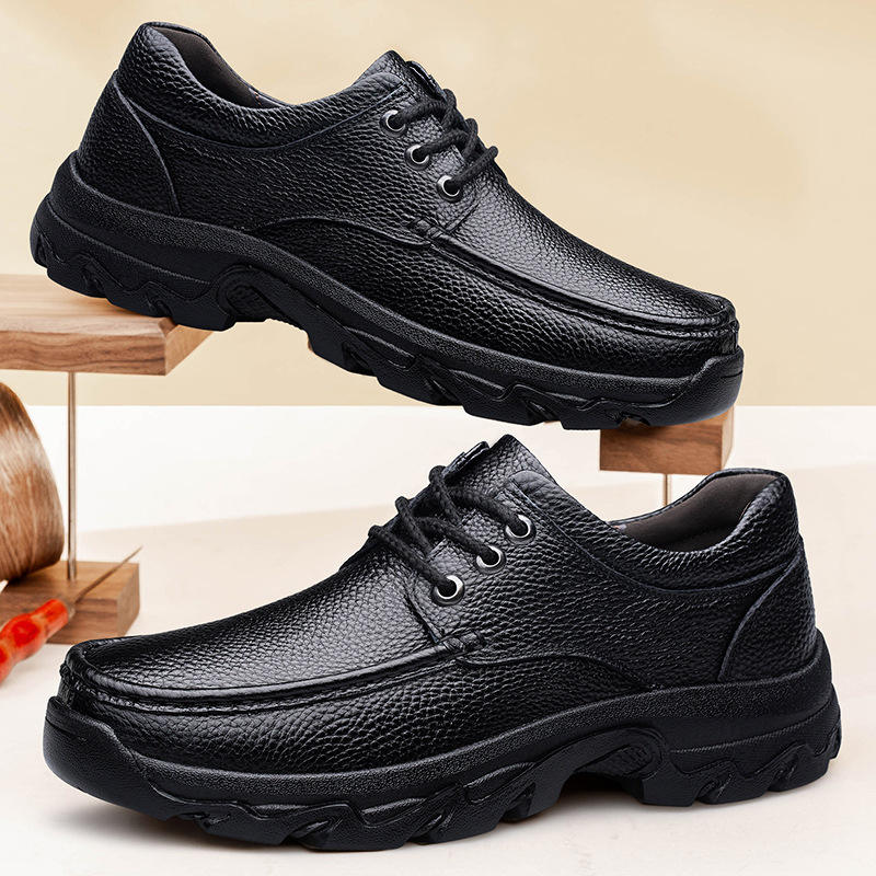 รองเท้าธุรกิจข้ามพรมแดนไซส์ใหญ่ แบบลำลอง หนังแท้ หุ้มข้อต่ำ ผูกเชือก กำมะหยี่ ระบายอากาศ น้ำหนักเบา กันลื่น เหมาะสำหรับฤดูใบไม้ร่วง ใส่ทำงานได้