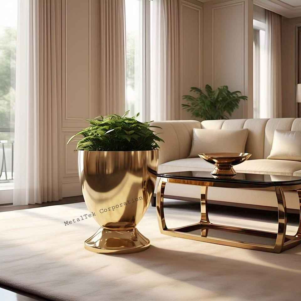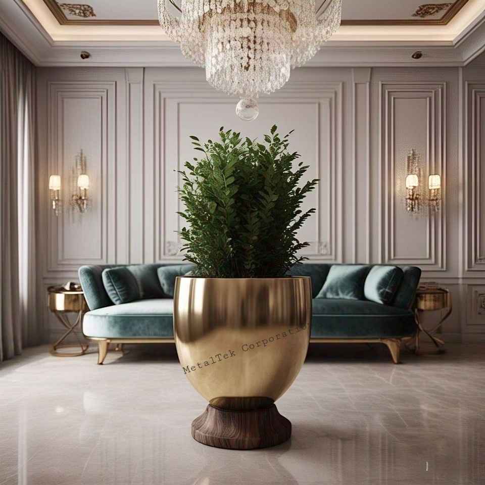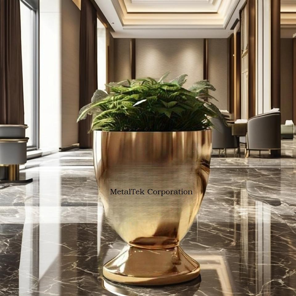 กระถางต้นไม้ชุบโลหะขนาดใหญ่ทำจากโลหะขนาดใหญ่สำหรับตกแต่งในงานแต่งงานของโรงแรมหรูหราห้องนั่งเล่นในร่มกระถางต้นไม้ขนาดใหญ่