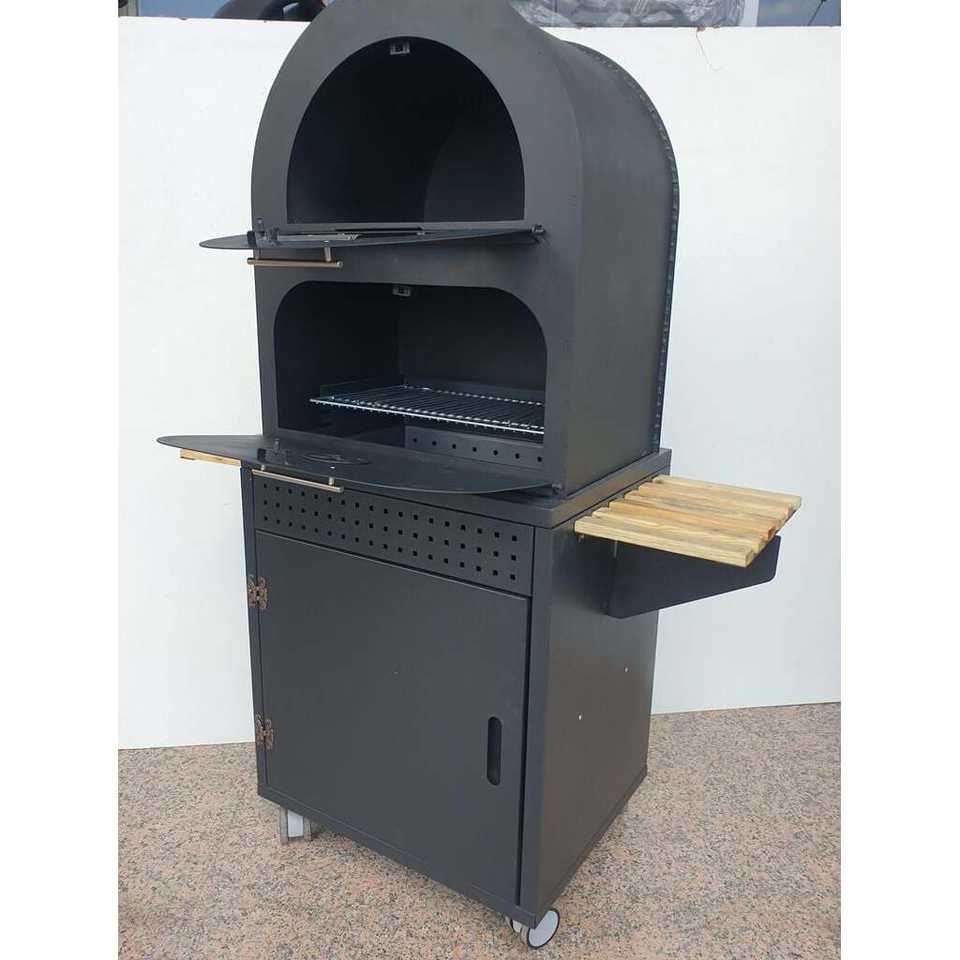 เตาย่างบาร์บีคิวพิซซ่าขนาดใหญ่พร้อมฝากระโปรงเหล็กคาร์บอนปรับได้สำหรับ5คนสำหรับห้องครัวในบ้าน