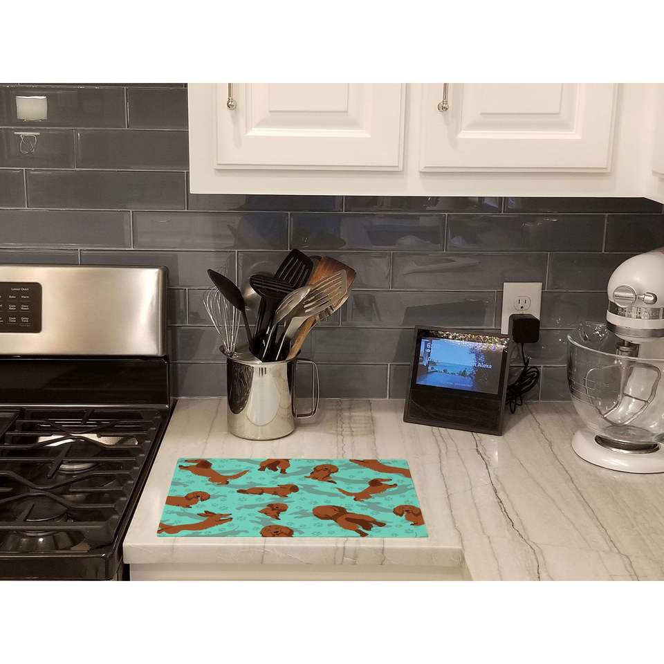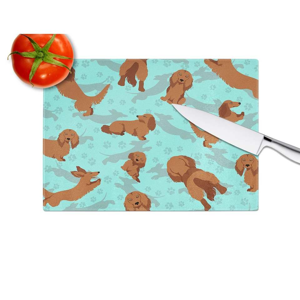 ดัชชุนด์กระจกตกแต่งสีแดงขนาดใหญ่เขียงสำหรับเสิร์ฟอาหารและจานเสิร์ฟในครัว
