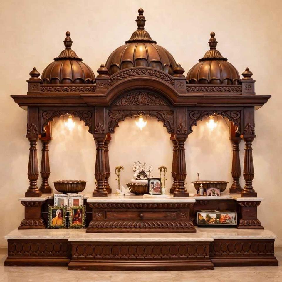 Large Size Teak Wood Temple with Storage Cabinets Customized Wooden Temple for Home Export Quality Pooja Unit At Wholesale Price