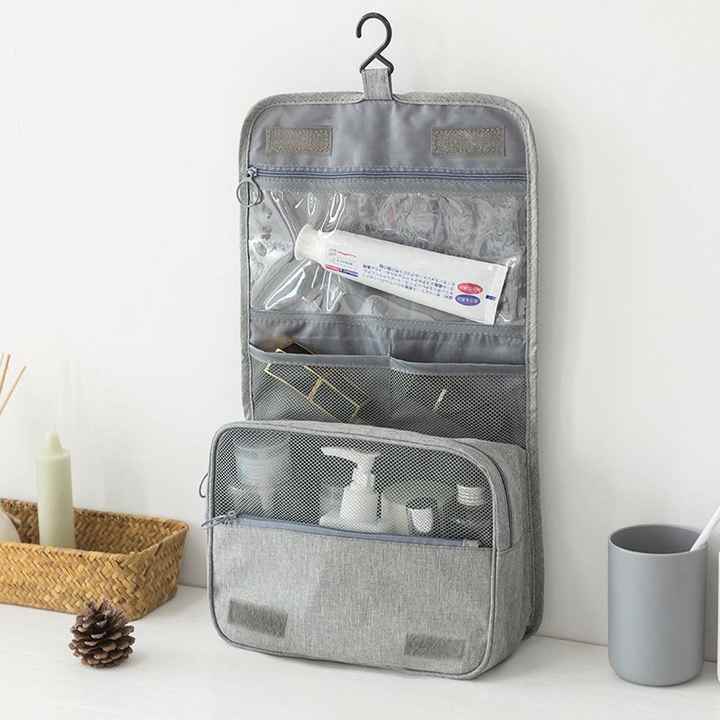 กระเป๋าใส่เครื่องสำอางขนาดใหญ่สำหรับผู้หญิง กระเป๋าจัดระเบียบของใช้จำเป็นสำหรับการเดินทาง กระเป๋าแขวนสำหรับใส่เครื่องสำอาง อุปกรณ์เสริม และของใช้ในห้องน้ำ
