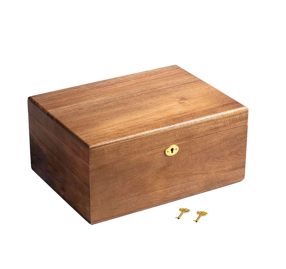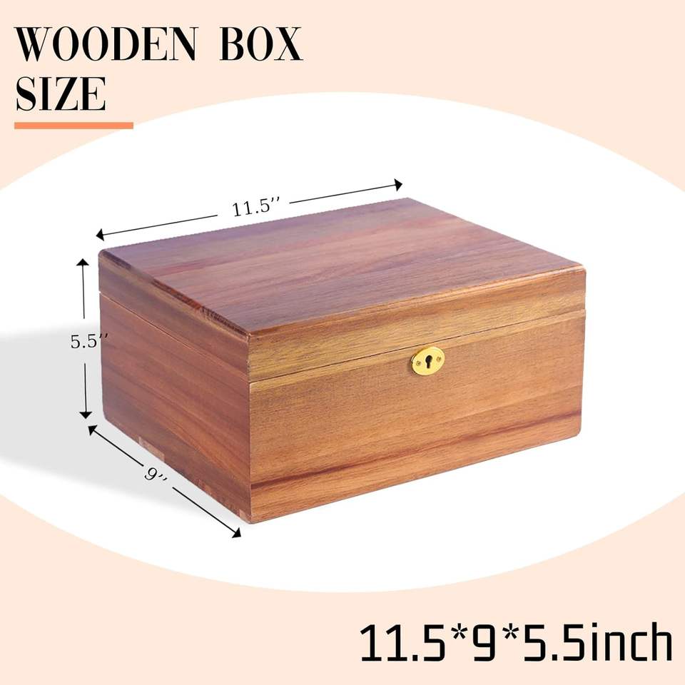กล่องเก็บของไม้กระถินขนาดใหญ่พร้อมฝาปิดแบบมีบานพับและกุญแจล็อค กล่องเก็บของที่ระลึกคุณภาพพรีเมียมสำหรับจัดเก็บเครื่องประดับ