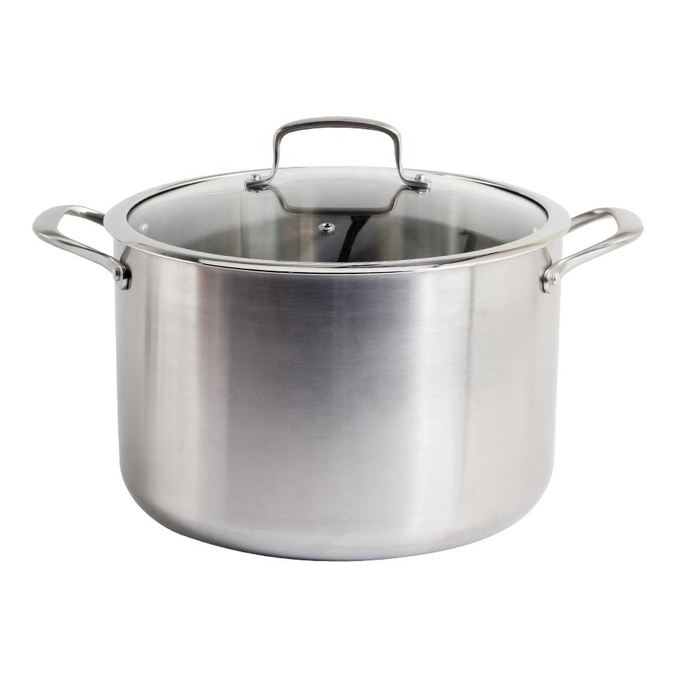 หม้อสต็อกทำอาหารสแตนเลสสามชั้นพร้อมฝา