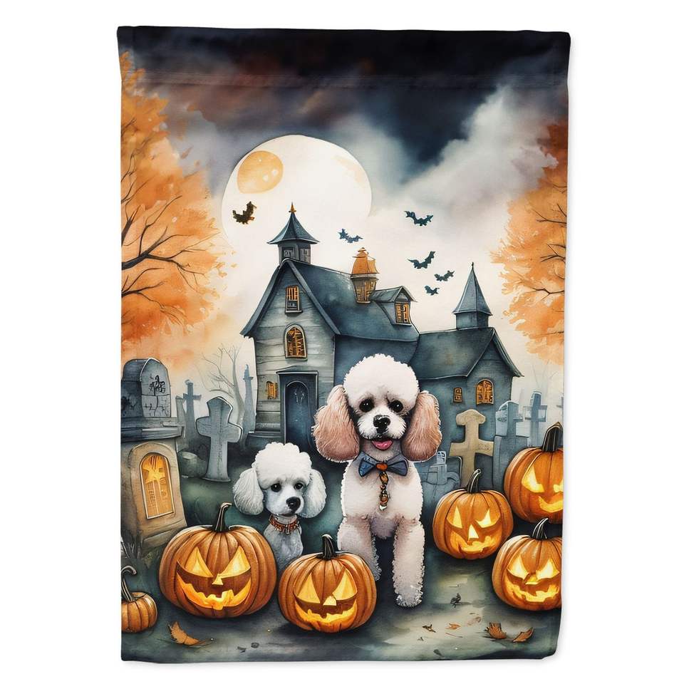 ธงบ้านพุดเดิ้ลฮาโลวีนน่ากลัวขนาดใหญ่หลากสีเสาสำหรับตกแต่งลานแบนเนอร์ตกแต่งผนังงานศิลปะโพลีเอสเตอร์แขวนผนัง