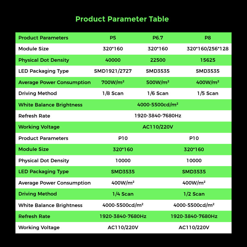 พิกเซล:1.95 มม./2.60 มม./2.97 มม./3.91 มม./4.81 มม.