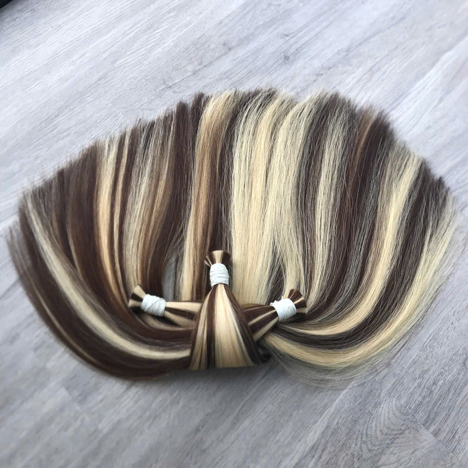 ผมมนุษย์แท้เวียดนามแบบ100% ไม่ผ่านกระบวนการผมมนุษย์ต่อผมมนุษย์มีหนังกำพร้าสีเปียโน