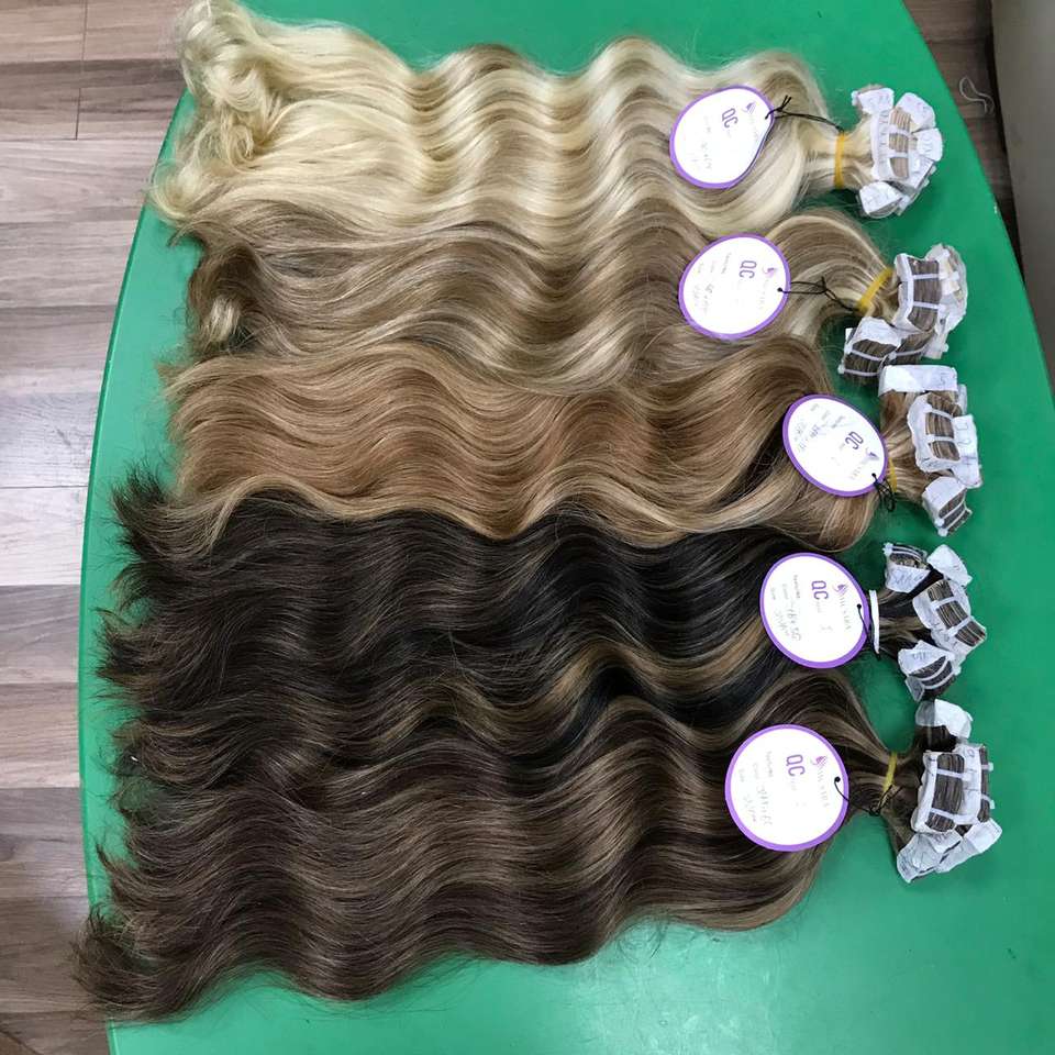 หุ้นขนาดใหญ่ที่มีคุณภาพสูงผมบริสุทธิ์100% Remy มนุษย์คู่วาดเทปต่อผมหนังกำพร้าชิด