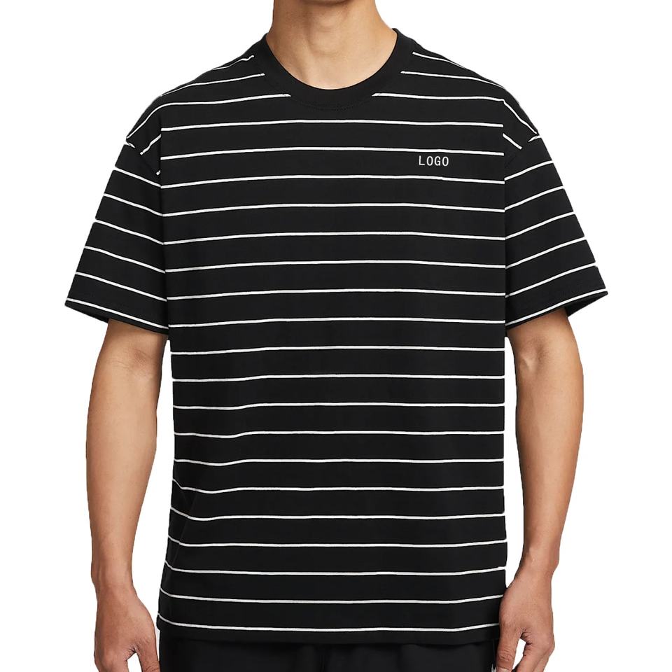 เสื้อยืดลายทางขนาดใหญ่ แขนสั้น ผู้ชาย ฤดูร้อน แฟชั่นใหม่ สีตัดต่อ ทรงหลวม ผ้าฝ้ายแท้ เสื้อยืดผู้ชาย