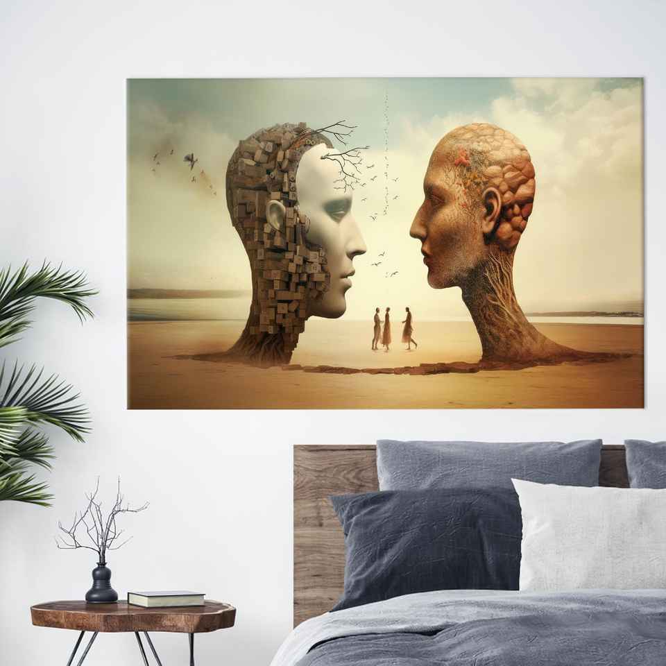 ภาพพิมพ์ศิลปะหัวมนุษย์ขนาดใหญ่บนผ้าใบ - ของตกแต่งผนังสไตล์โบโฮสมัยใหม่,1P:Gallery Wrapped