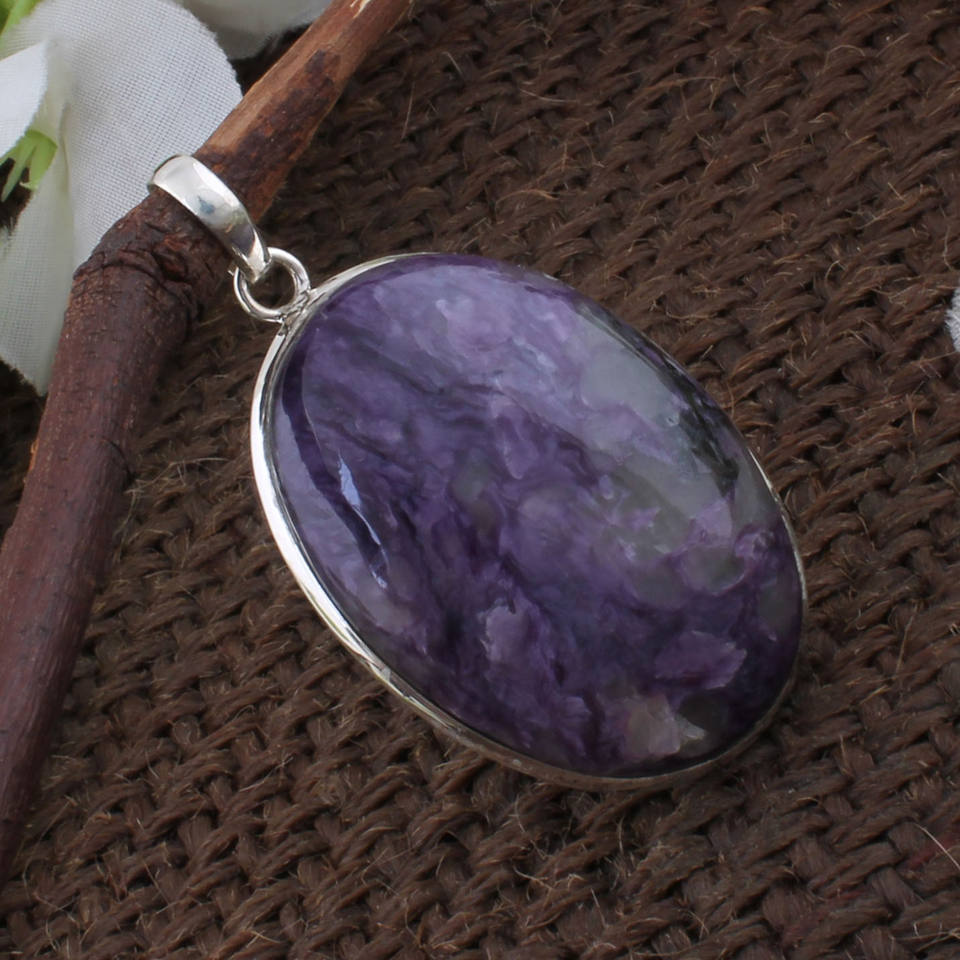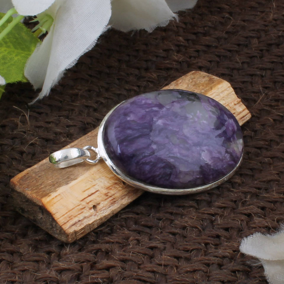 จี้เงินแท้ 925 ประดับพลอยชารอยต์วินเทจขนาดใหญ่ทรงกรอบ งานแฮนด์เมด ดีไซน์เรียบง่าย พร้อมสร้อยคอ