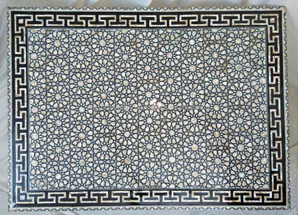 โต๊ะกาแฟทรงสี่เหลี่ยมผืนผ้าขนาดใหญ่ รุ่น W116 ทำจากไม้และมุกแบบอียิปต์ สีน้ำตาล ใช้เป็นโต๊ะข้างสำหรับห้องนั่งเล่นในบ้าน