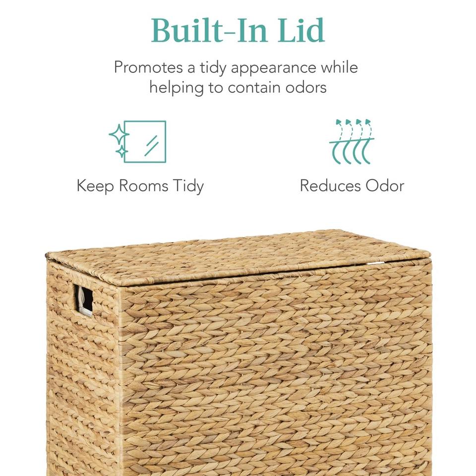 ตะกร้าผ้าสองชั้นทำจากผักตบชวาขนาดใหญ่ ตะกร้าเก็บของทำมือ ขายส่ง เป็นมิตรกับสิ่งแวดล้อม ผลิตในเวียดนาม