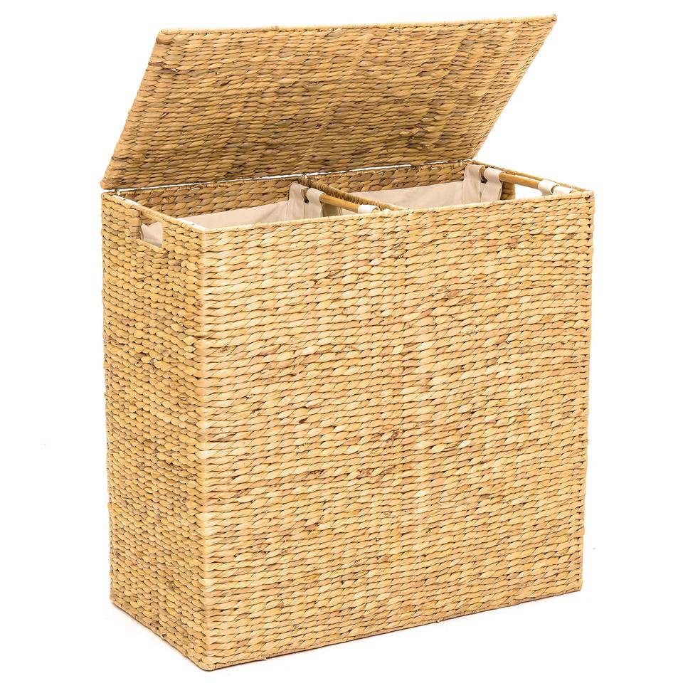 ตะกร้าใส่ผ้าขนาดใหญ่ ทำจากผักตบชวา แบบสองช่อง
