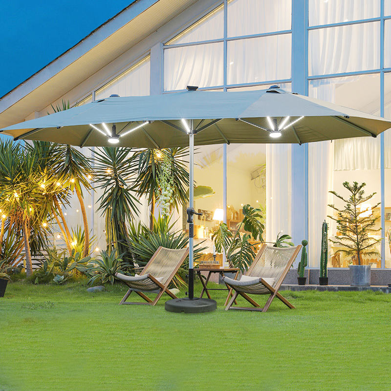 ร่มกันแดดกลางแจ้งกันน้ำขนาดใหญ่ฐานเป็นเหล็กโพลีเอสเตอร์สำหรับสวนวิลล่าหลังคาบ้านพักลานขนาดเล็ก