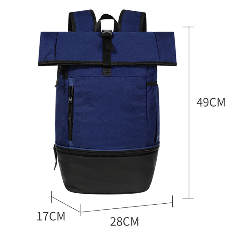 กระเป๋าเป้สะพายหลังกีฬาลำลองกันน้ำม้วนด้านบนขนาดใหญ่สำหรับผู้ชายผ้าโพลีเอสเตอร์ผ้าอ๊อกซ์ฟอร์ดสะดวกและมีสไตล์